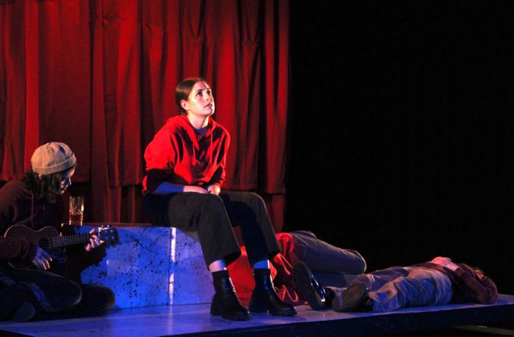 Another element that contributed to this dreamlike aura was the production’s most entrancing: a sheet draped from ceiling to floor, upon which various images — designed by Julian Kelley — are projected throughout the play. At certain moments, these images bleed down the screen, amplifying the supernatural element of the production and creating an evocative visual experience.